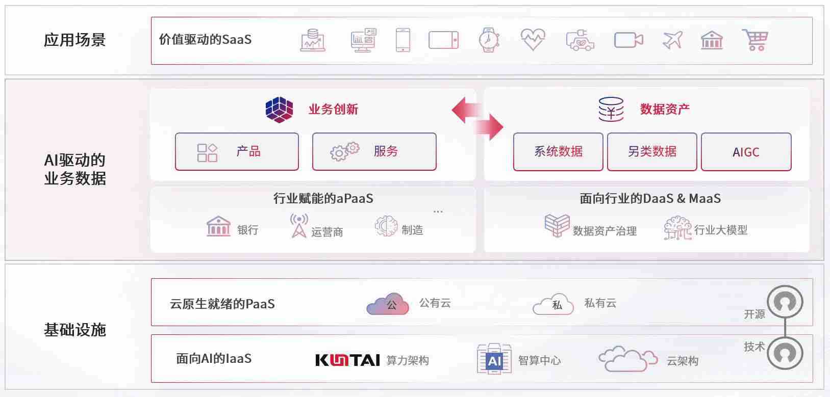 数字时代,,,围绕企业数字化转型的关键要素,,RB88数码开创性的提出数云融合战略和技术体系框架,,,,着力在云原生、、数字原生、、、、AI原生和信创产业上架构产品和服务能力,,,,为处在不同数字化转型阶段的快消零售、、、、汽车、、金融、、、医疗、、、、政企、、、、教育、、、、运营商等行业客户提供泛在的敏捷IT能力和融合的数据驱动能力,,构建跨界融合创新的数字业务场景和新业务模式,,助力企业级客户建立面向未来的核心能力和竞争优势,,,,全面推动社会的数字化、、、、智能化转型升级。。